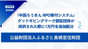 公益財団法人ふるさと島根定住財団では、「中国ろうきん NPO寄付システム」において、グッドギビングマーク認証団体が採択された際に、1万円を追加配分しています。