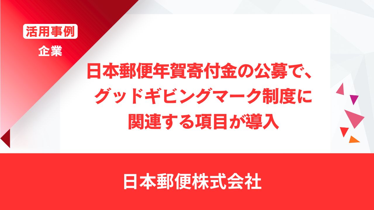2026年度 日本郵便年賀寄付金配分団体の公募で、グッドギビングマーク制度に関連する項目が導入されています