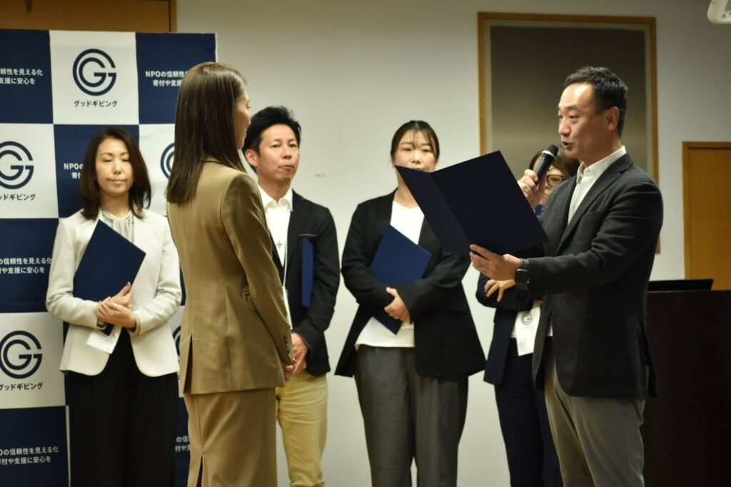 シンポジウム内では、グッドギビングマーク認証団体への認証付与式も行われ、NPOの信頼性向上に向けた新たな一歩を共に祝いました。