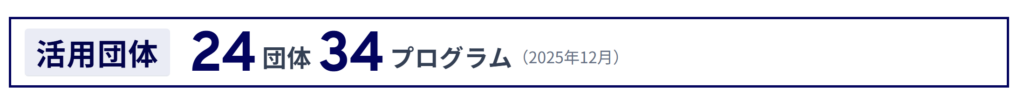 制度の趣旨に共感し、ともに信頼ある寄付・支援の環境づくりに取り組む活用団体・24企業/団体、賛同団体・59企業/団体をご紹介いたします(2025年12月1日時点)。