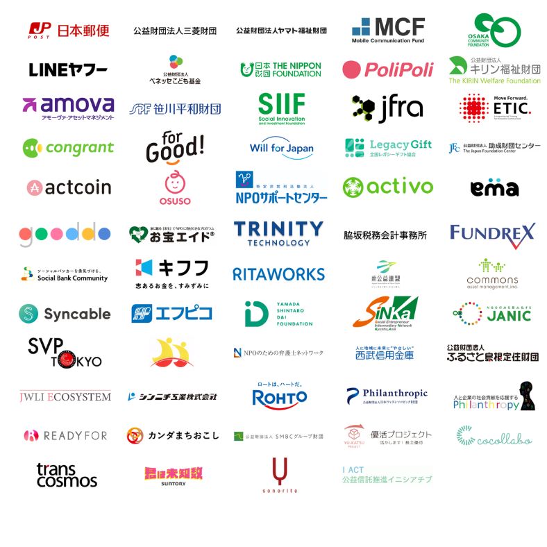企業や助成団体をはじめとする多くの団体が、グッドギビングマーク制度の趣旨に賛同してくださっています。