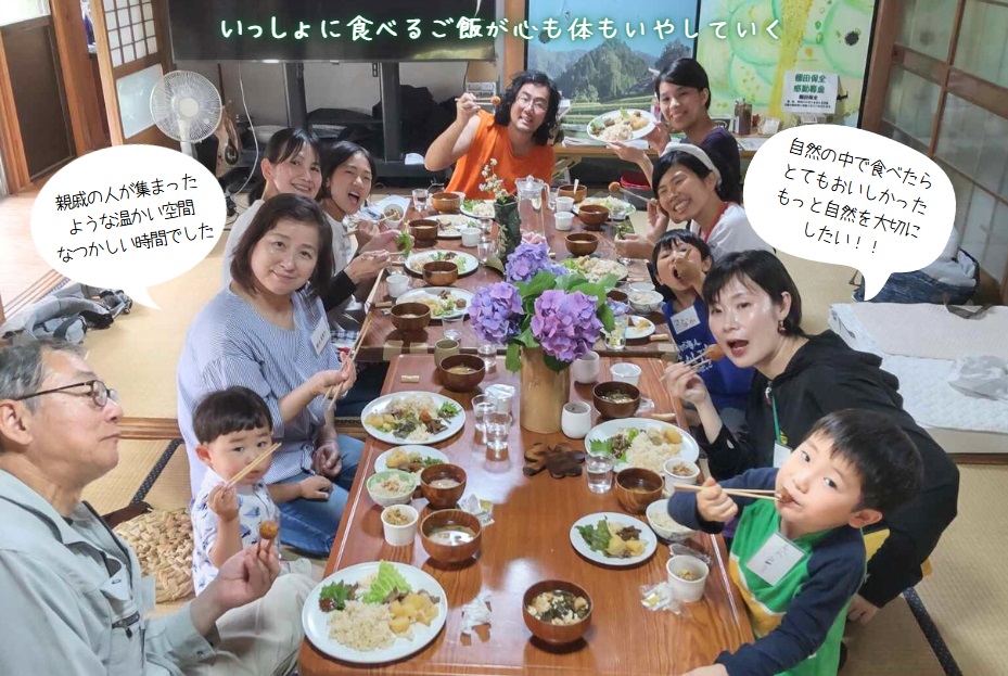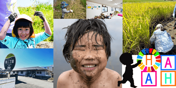 棚田でのお米を育てる体験、自然体験を通じて、自然環境の素晴らしさを伝え続けています。棚田にはとても爽やかな風が吹いています。棚田とは、山の斜面や谷間の傾斜地に階段状に造られている水田のことです。何世代にもわたって、育まれてきた、先祖の想いがこもった大切な場所で、水不足や地滑りを防ぎ、多様な生物を育むなどの豊かな土壌を保つ働きがあります。この「命」を感じる棚田を未来につなげていきます。